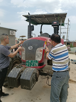 在浦口镇的连江县利佳农机专业合作社,检查组一行详细了解合作社的农机安全生产情况,向农业企业负责人宣传农机安全生产的重要性,为农机大户张贴安全警示标语,提升农机大户和农机手的农机安全生产和交通安全意识,重点检查拖拉机是否粘贴反光标识,拖拉机和联合收割机是否办理登记手续,农业机械安全装置和防护是否齐全有效,并对存在的隐患进行现场整改。