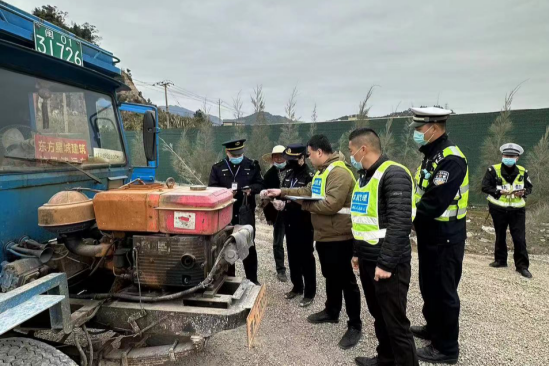 为贯彻落实《福建省农业农村厅关于认真贯彻落实习近平总书记重要指示精神切实做好年终岁尾农机安全生产工作的通知》要求,全面深入排查整治农机安全隐患,有效防范化解重大农机安全风险。2023年2月22日市农业农村局农机处、农业执法支队联合罗源县交警大队、农机发展中心在罗源县松山镇开展农机安全执法检查,检查中发现两部拖拉机存在安全隐患,并下达安全整改通知单,要求农机手立即排除隐患,做到立行立改,确保农机生产安全。