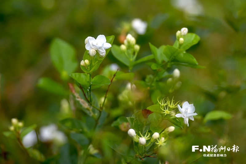 乌龙江湿地公园河堤畔茉莉花盛开。记者 陈暖 摄