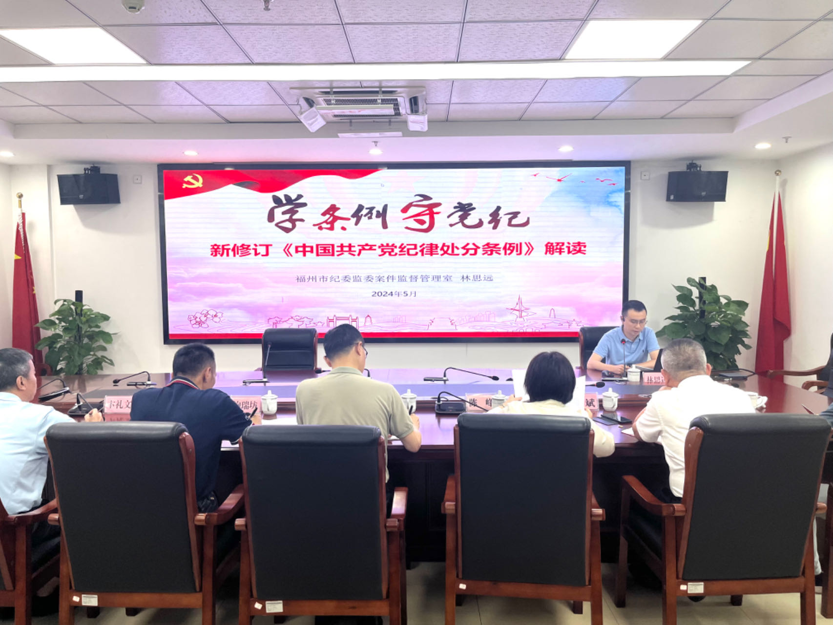 5月28日下午,读书班开班式后,邀请市纪委监委案管室主任林思远作《学条例,守党纪》专题辅导讲座。林思远主任主要从《中国共产党纪律处分条例》历史沿革、主要内容和贯彻执行三个方面,结合党纪党规和典型案例,对《中国共产党纪律处分条例》作了系统、全面、深入的解读,进一步强化党员干部纪律意识、加强自我约束、提高免疫能力,始终做到忠诚干净担当。