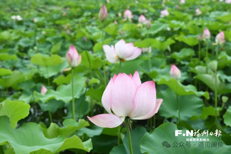 夏日里,当古老的溪源古寨配上淡雅的荷花,是怎样的美景?当下,闽侯鸿尾乡溪源村里,荷花已开满池塘,清香四溢,沁人心脾。