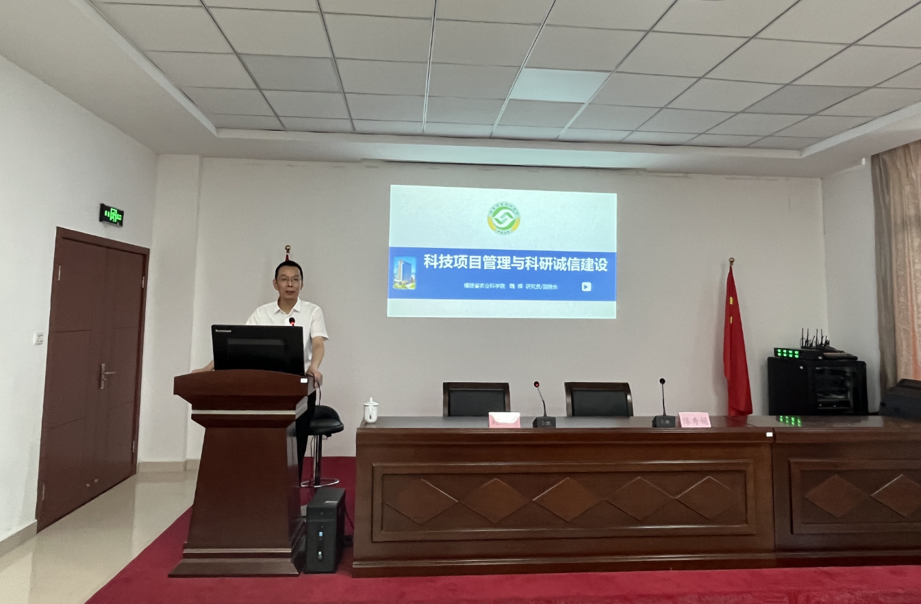 7月12日,福建省农业科学院党委委员、副院长、博士生导师魏辉受邀莅临福州市蔬菜科学研究所,为全所职工作题为“科技项目管理与科研诚信建设”专题讲座。会议由所长陈秀娟主持,全所职工干部参加。