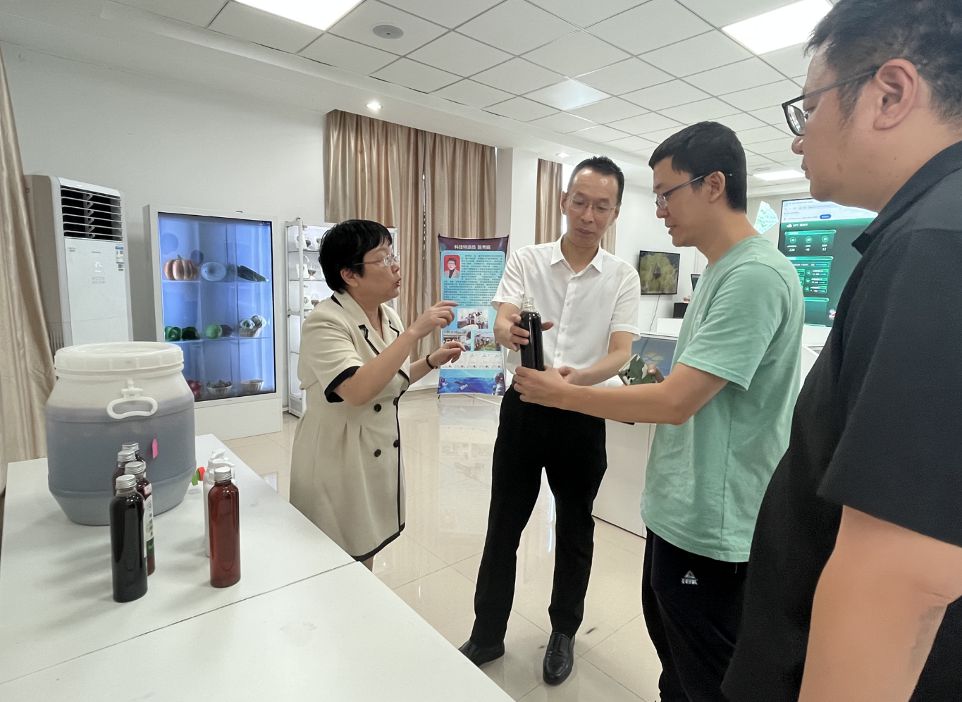 会后,魏辉一行参观了福州市蔬菜科学研究所的数字成果展厅,详细了解福州市蔬菜科学研究所的科技成果、历史沿革、农用酵素应用研究等,并就豇豆绿色防控研究达成初步合作意向。