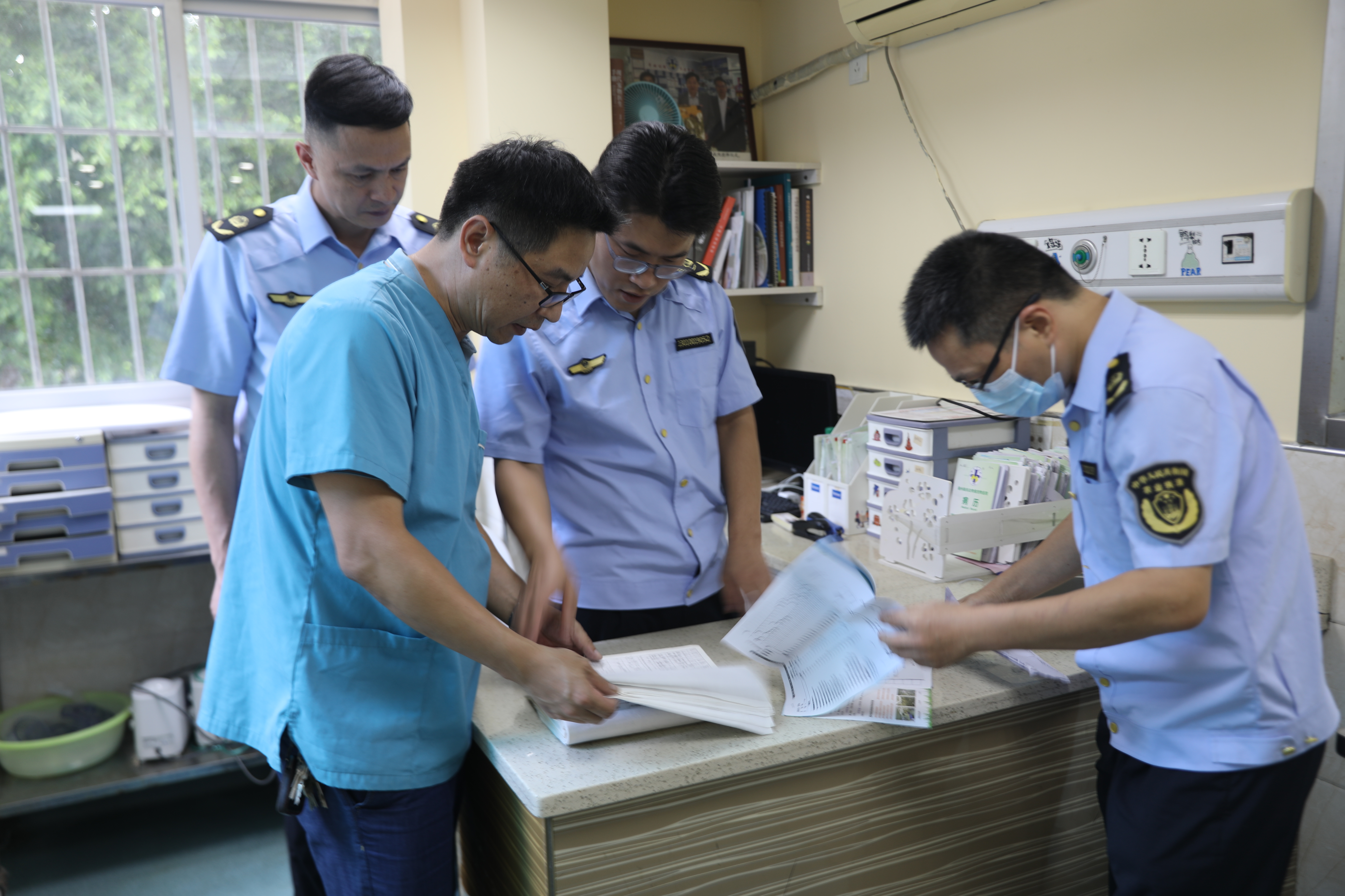 分管领导带领畜牧兽医处、农业综合执法支队工作人员,对六城区的97家免疫点随机抽查,督促免疫点依法依规开展免疫工作,如实、完整、规范出具犬只免疫证明,并同步将免疫档案信息实时录入养犬管理信息系统,严禁免疫过程弄虚作假以及伪造或者变造犬只免疫证明等违法违规行为。