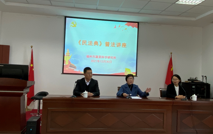 2021年是“十四五”和全面建设社会主义现代化国家的开局之年,也是“八五”普法的第一年。为更好的宣传教育普法知识,进一步强化职工干部的法治思维和法治素养,营造尊法、学法、守法、用法的浓厚氛围,12月30日,邀请我所法律顾问福建知望律师事务所的孟麦娟律师作题为《美好生活民法典相伴》的专题普法讲座,全所职工参加。