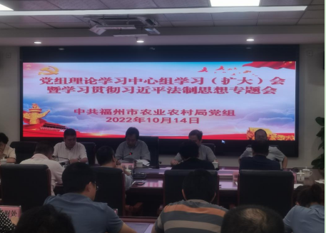 10月14日,福州市农业农村局组织召开习近平法治思想专题培训会,会议由局党组书记、局长林健主持会议,各分管领导、各处站所全体干部职工参会。