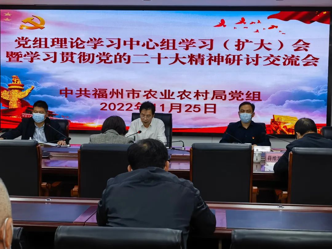 11月25日,皇冠博彩 党组召开理论学习中心组学习会,集中学习研讨党的二十大精神,认真学习贯彻习近平总书记在二十届中央政治局第一次集体学习时的重要讲话精神,深入学习习近平总书记在10月25日中共中央政治局会议,瞻仰延安革命纪念地时的重要讲话精神等。局党组书记、局长林健主持会议并讲话。局党组成员围绕学习贯彻党的二十大精神,结合“三农”工作实际和分管工作领域,认真谋划明年工作思路进行逐一发言,交流学习体会。局副处级以上领导,机关各处室、各直属单位负责同志参加会议。