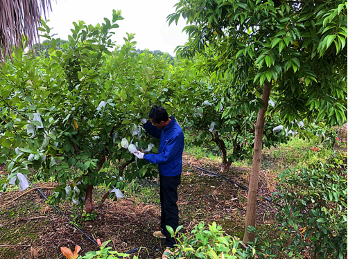 榕升果园作为农科所省科技计划项目——《“珍珠”番石榴绿色高效栽培技术集成与应用》试验示范基地,全国劳模、研究员赵依杰围绕番石榴种植高效栽培技术、田间管理等进行详细讲解,并针对番石榴病虫害防治基本知识,病虫害症状识别和发生规律、防治方法等方面现场为番石榴种植户答疑解惑。