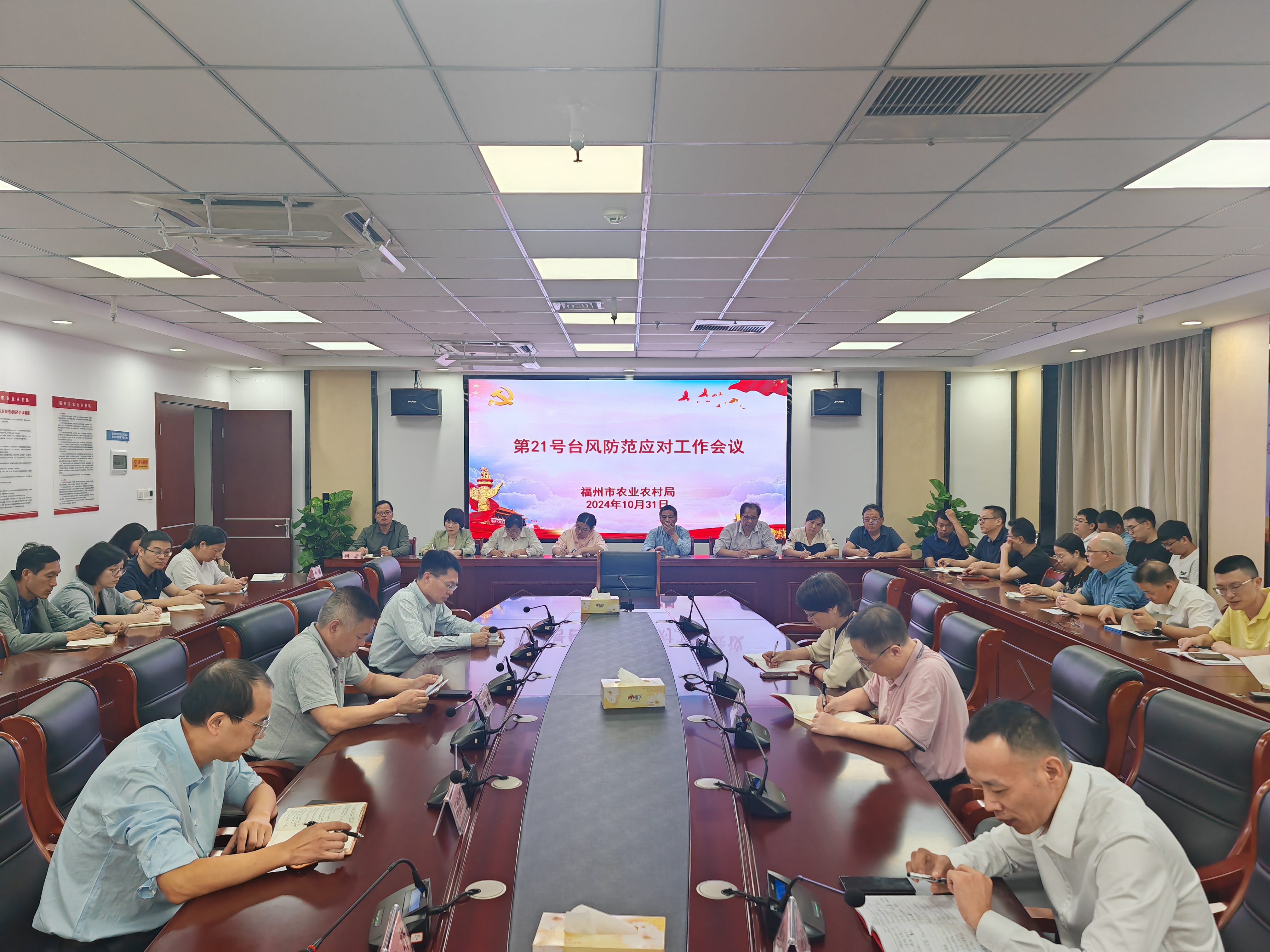 紧急召开第21号台风防范应对工作会议。局有关领导、各处室、站、所负责人参加会议。局党组成员、三级调研员朱裕富做工作部署。