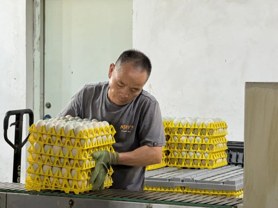 全流程智能化管理也出现在蛋鸭养殖过程中。在位于丹云乡的永泰县金蛋发展有限公司,智能棚舍里的自动喂料机11点准时开启,鸭子们悠闲地吃食、饮水。与此同时,一枚枚新鲜出炉的鸭蛋通过自动传输带源源不断地送往集蛋车间,再进行整理打包。借助智能化的方式,每天有数十万枚鸭蛋从这里运出,端上人们的餐桌。