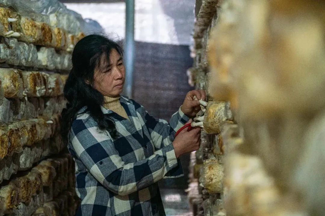 游客在起步镇体验菌菇采摘。石美祥 摄
