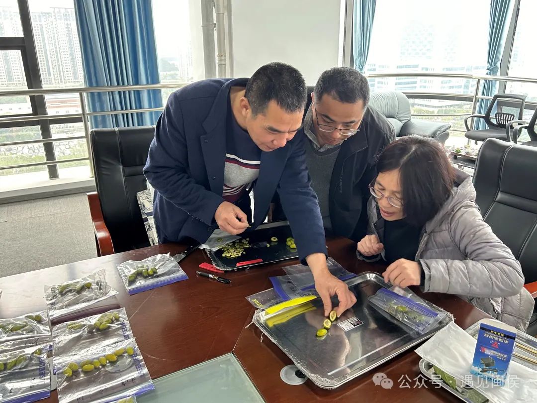 工作人员分析橄榄果实低温胁迫冻害试验成果。闽侯县气象局供图