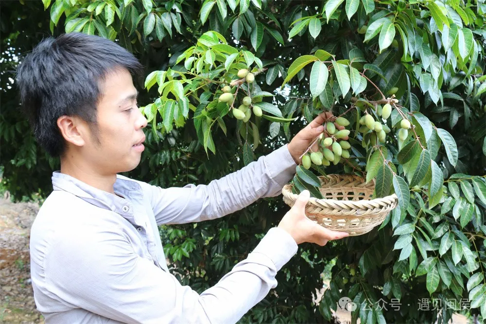 陈小彬正在采摘橄榄。图源:遇见闽侯 陈小彬供图