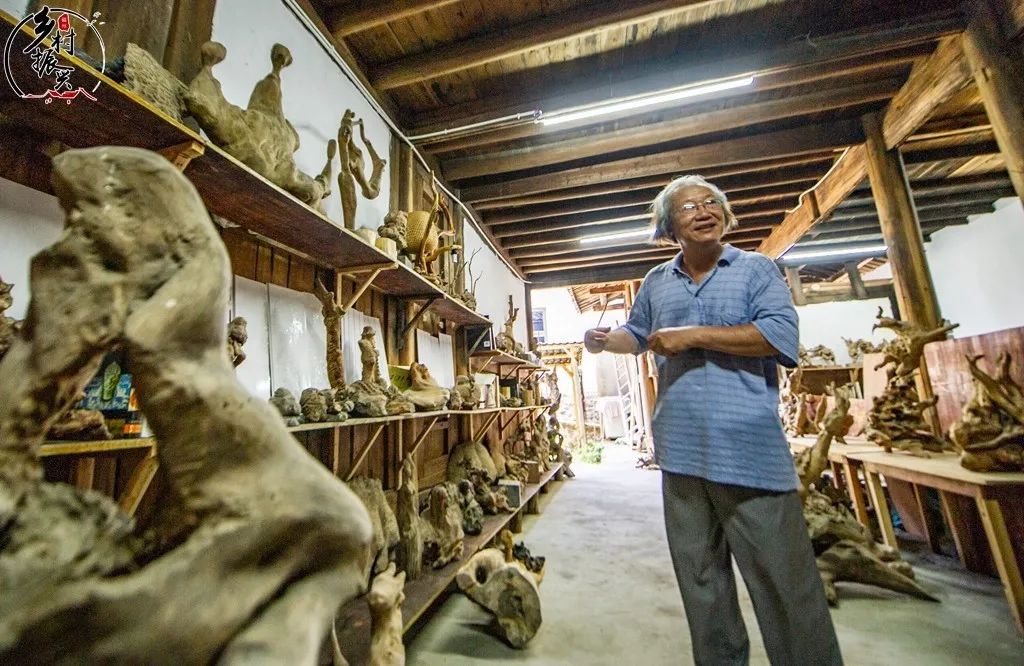 74岁的林兴坦是福州市的根雕艺术大师,来到斌溪村后,他将村民废弃的房屋改造成“文武溪根雕馆”,而且带来了自己不同时期创作的200多件根雕作品。游客来到村里,可以听林兴坦讲述每一件作品背后的故事,让游客在欣赏根雕艺术的同时,也能感受斌溪村千年文化的韵味。