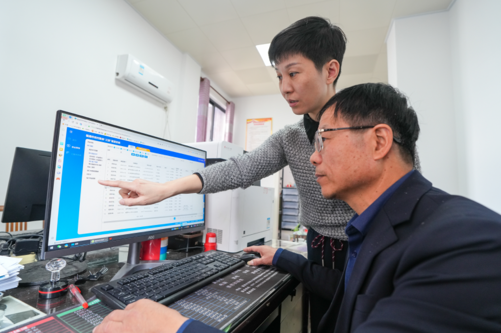 福清市纪检监察干部通过“三资”数字管理系统查看资产台账有关情况。图源:清风福州