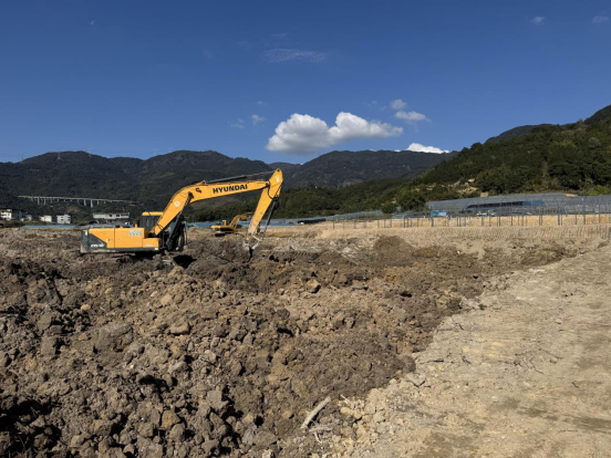 挖掘机进行平整土地作业。福建田美种业供图